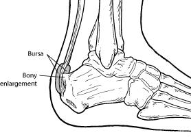 Haglund’s deformity is a bony enlargement on the back of the heel. The soft tissue near the Achilles tendon becomes irritated when the bony enlargement rubs against shoes. This often leads to painful bursitis, which is an inflammation of the bursa (a fluid-filled sac between the tendon and bone).